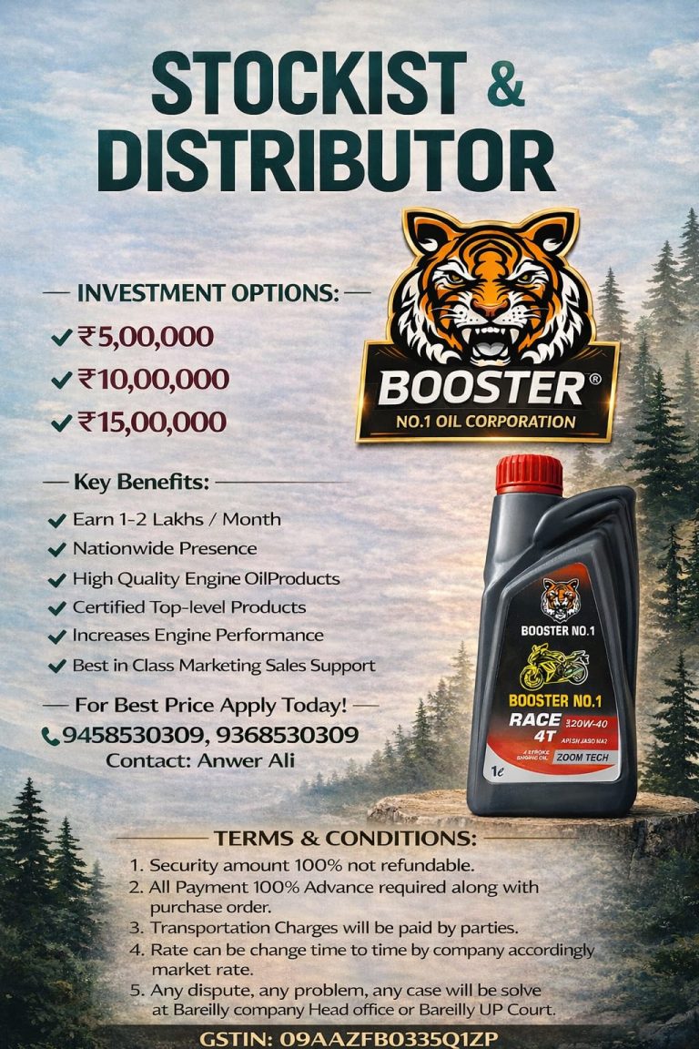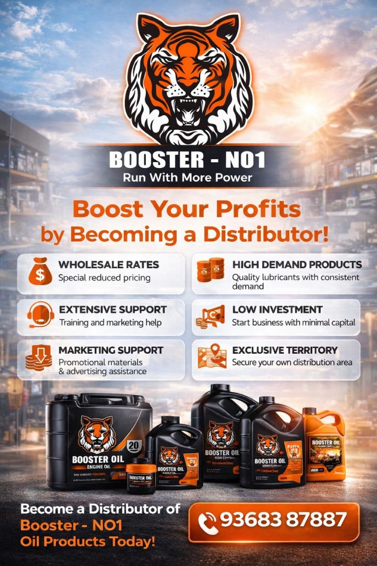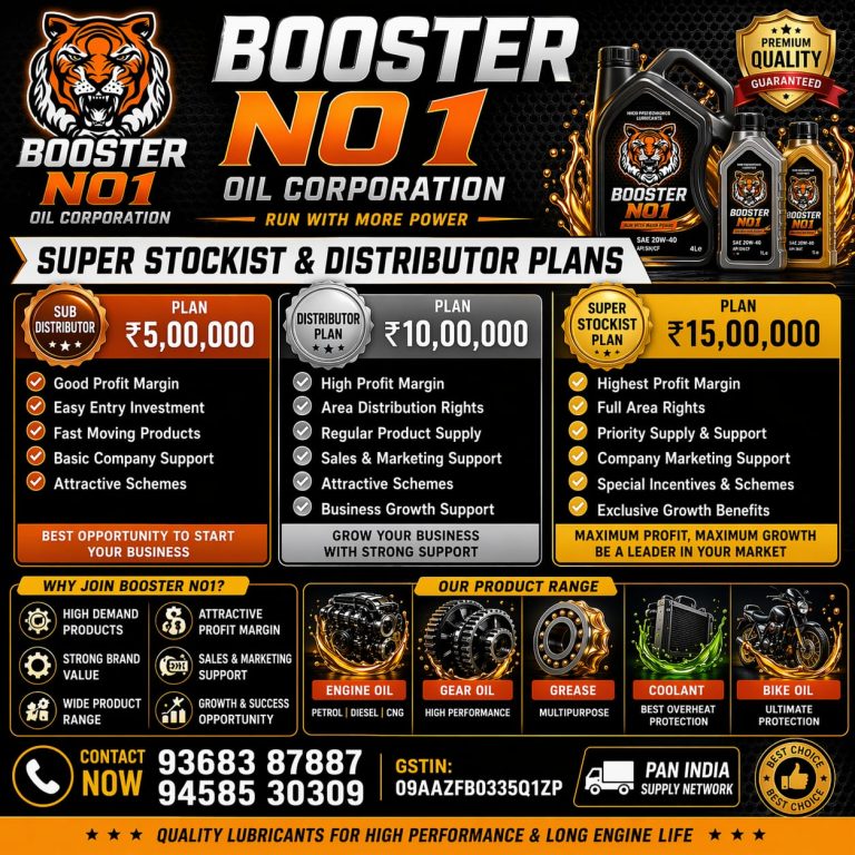 Becoming a lubricant oil distributor is a highly profitable and stable business, as the growing number of automobiles and industrial machinery in India creates a constant demand for lubricants. This business is low-risk, offering steady income and marketing support (sales support).